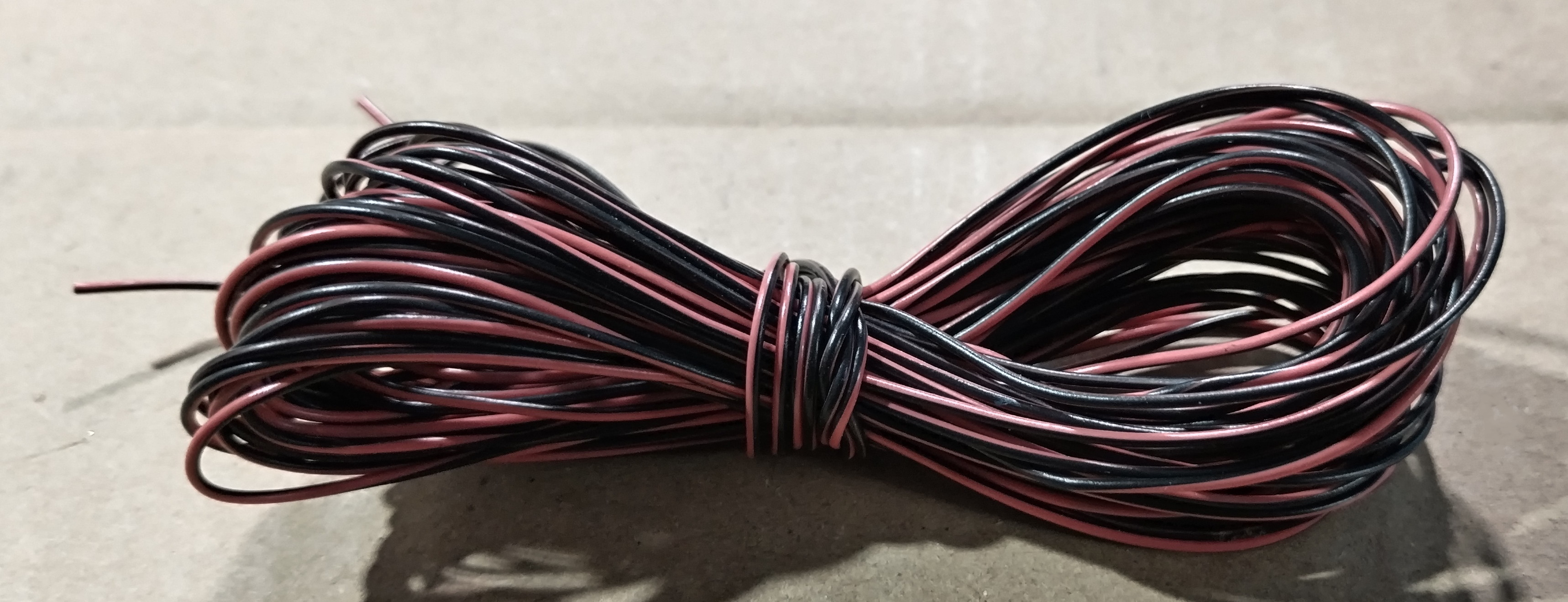 Sodrott bekötő vezeték, 1x0,14mm2, 300V, piros/fekete, 10m/tekercs.