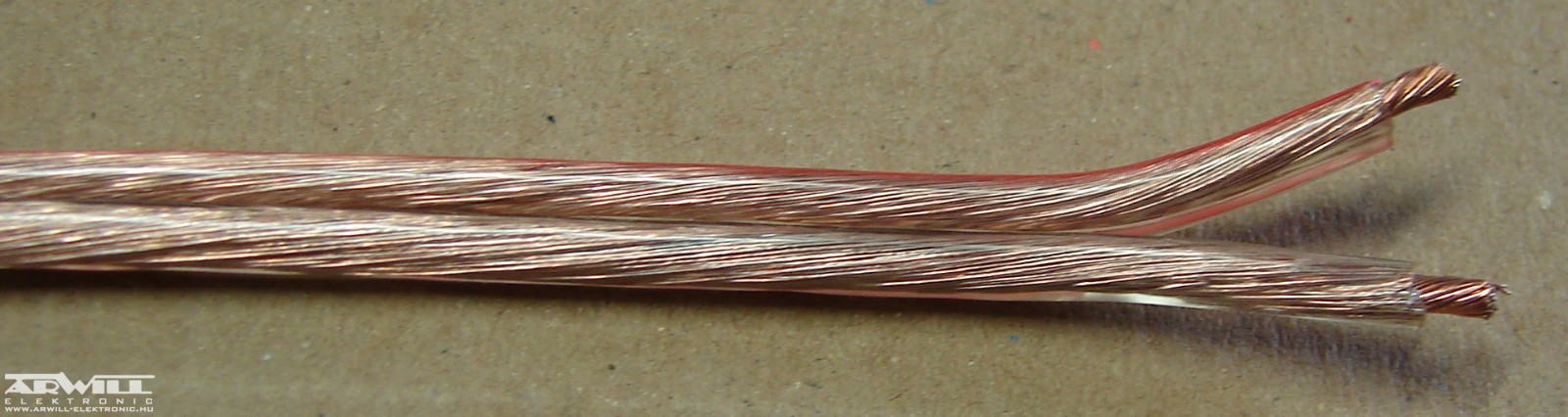 Hangszóró vezeték, 2x1,0mm2, RÉZ belső erek 2x(127x0,1mm2), külső átmérő 3,0x6,0mm, pvc szigetelés, transzparent, 100m/tekercs. Az ár 1m-re vonatkozik!